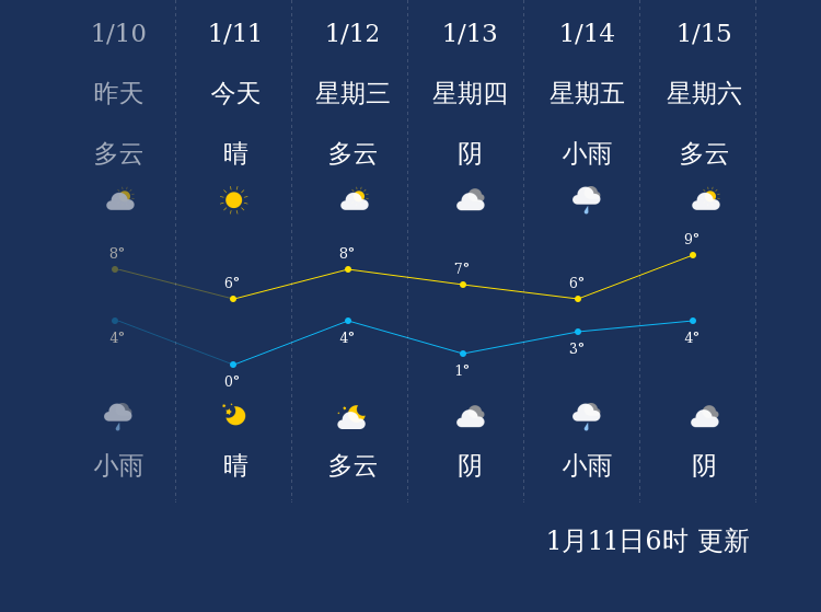 中国天气网讯 今天是1月11日星期二,一起来看天气。
