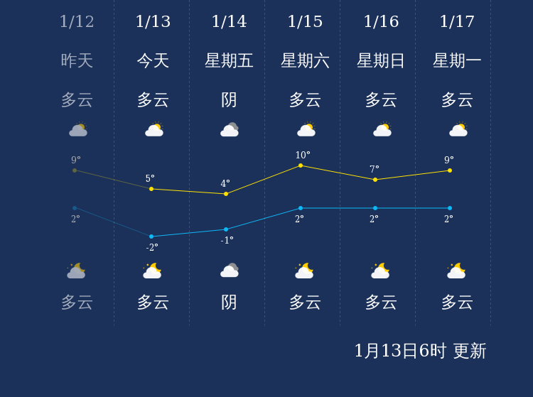 中国天气网讯 今天是1月13日星期四,一起来看天气。
