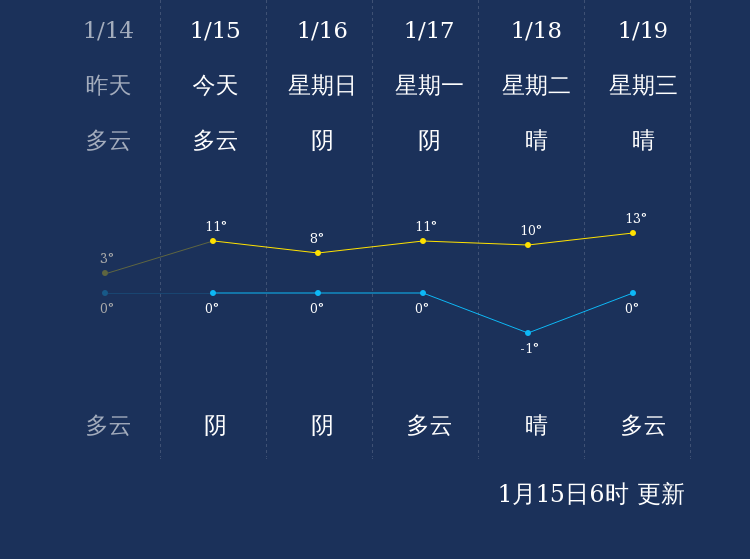 中国天气网讯 今天是1月15日星期六,一起来看天气。