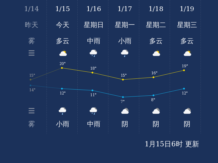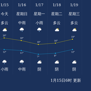 中国天气网讯 今天是1月15日星期六,一起来看天气。