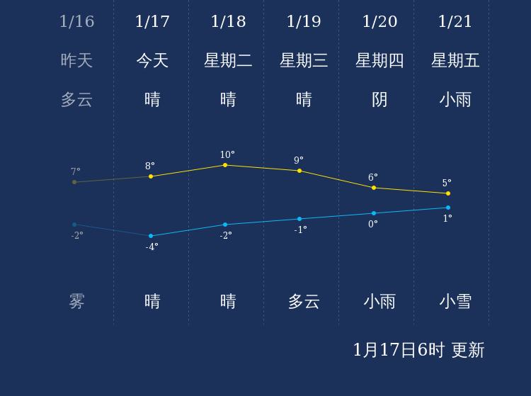 中国天气网讯 今天是1月17日星期一,一起来看天气。