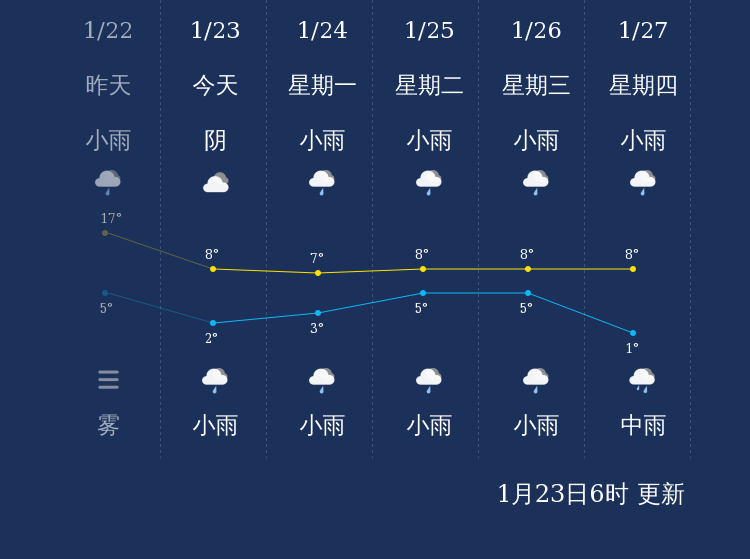 中国天气网讯 今天是1月23日星期日,一起来看天气。