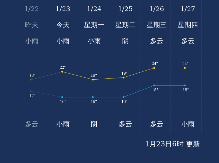 中国天气网讯 今天是1月23日星期日,一起来看天气。