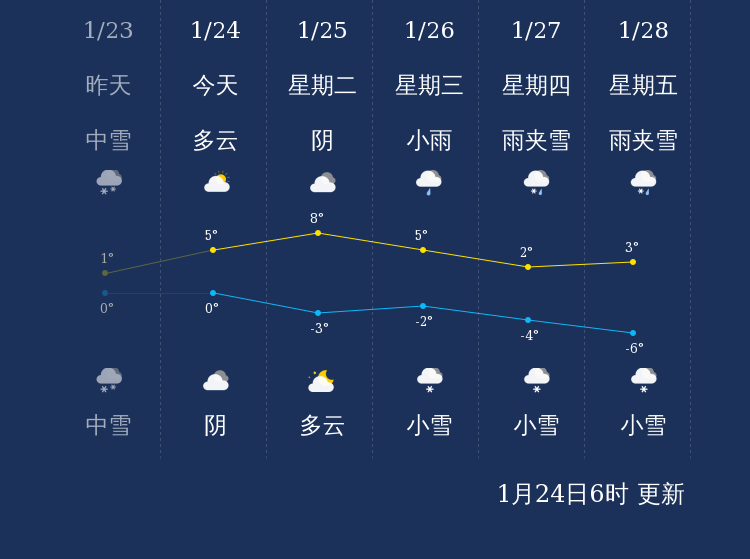 中国天气网讯 今天是1月24日星期一,一起来看天气。