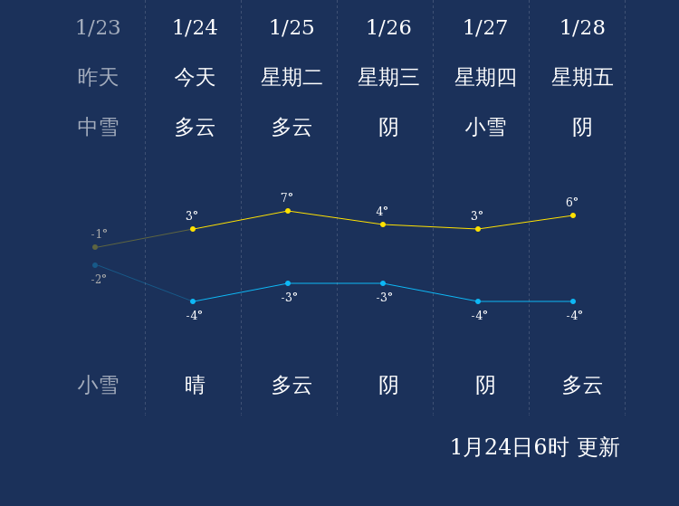 中国天气网讯 今天是1月24日星期一,一起来看天气。