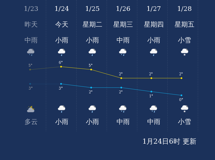 中国天气网讯 今天是1月24日星期一,一起来看天气。