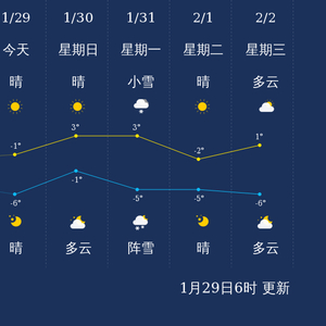 中国天气网讯 今天是1月29日星期六,一起来看天气。