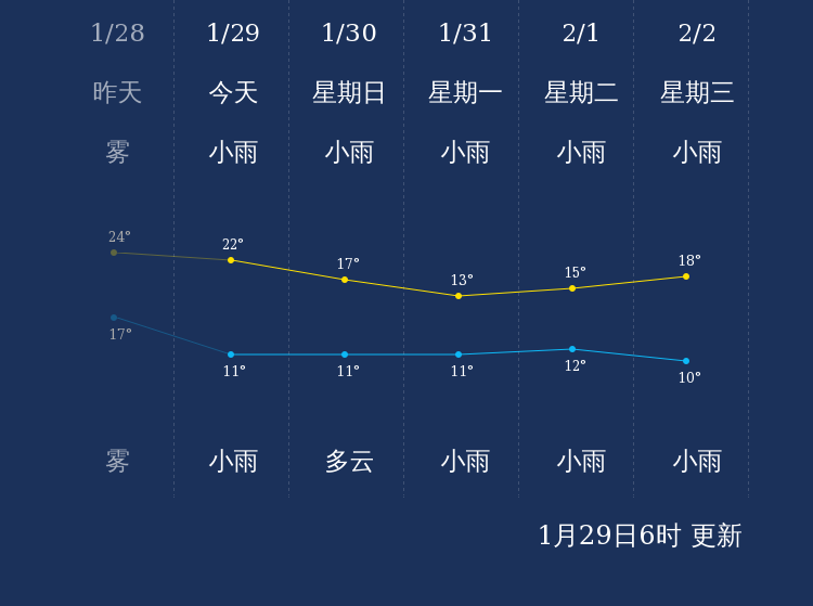中国天气网讯 今天是1月29日星期六,一起来看天气。
