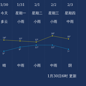 中国天气网讯 今天是1月30日星期日,一起来看天气。
