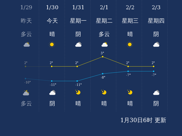 中国天气网讯 今天是1月30日星期日,一起来看天气。