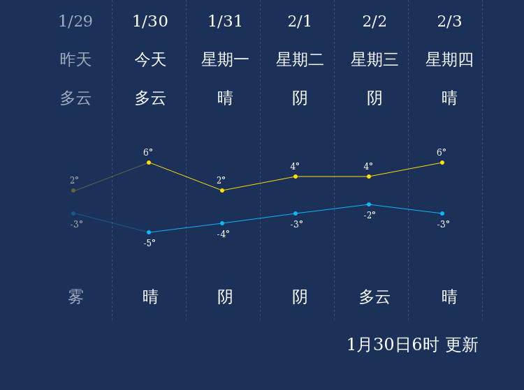 中国天气网讯 今天是1月30日星期日,一起来看天气。