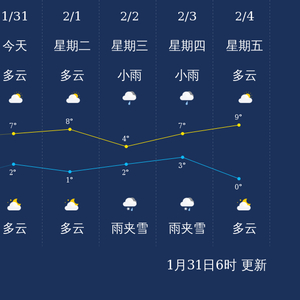 中国天气网讯 今天是1月31日星期一,一起来看天气。