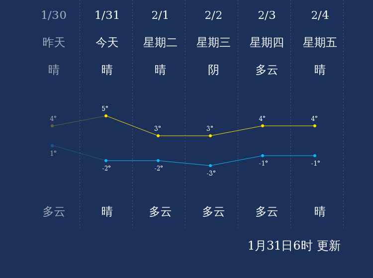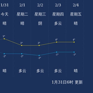 中国天气网讯 今天是1月31日星期一,一起来看天气。