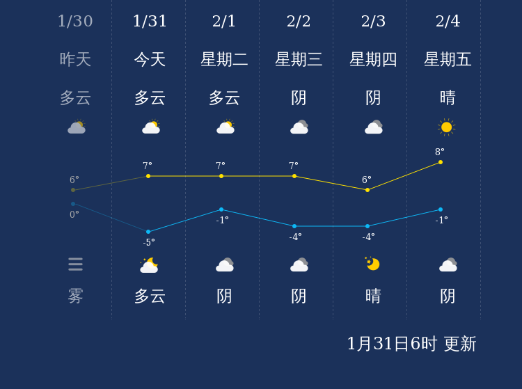 中国天气网讯 今天是1月31日星期一,一起来看天气。