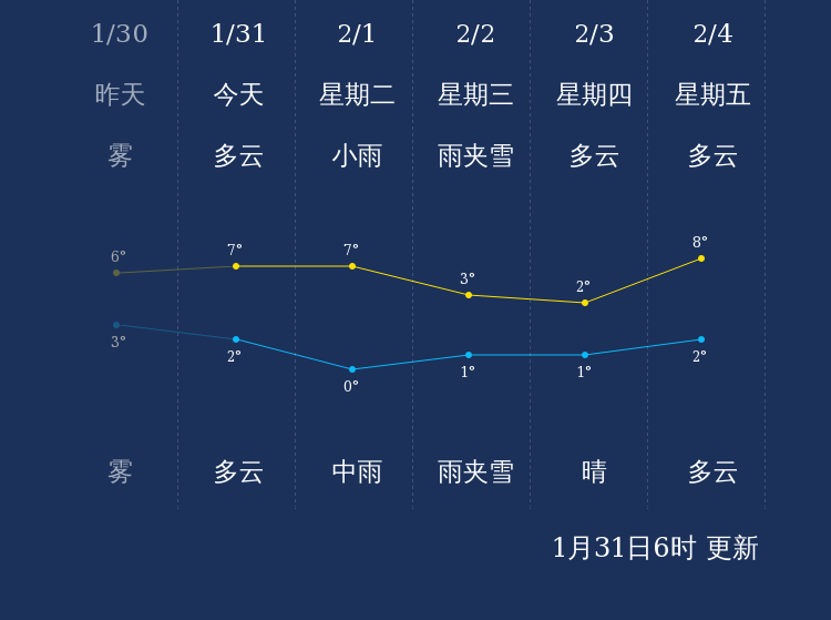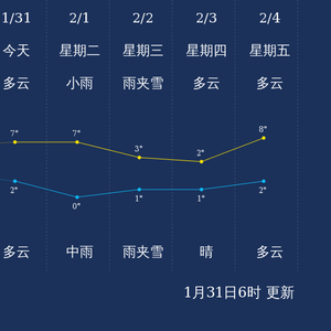 中国天气网讯 今天是1月31日星期一,一起来看天气。