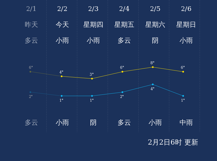 中国天气网讯 今天是2月2日星期三,一起来看天气。