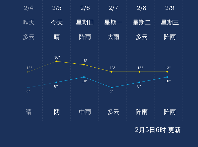 中国天气网讯 今天是2月5日星期六,一起来看天气。