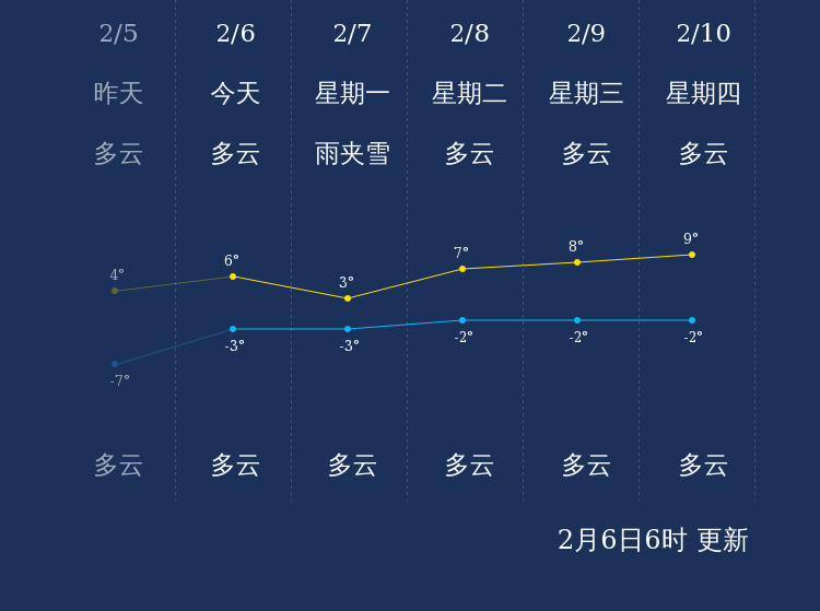 中国天气网讯 今天是2月6日星期日,一起来看天气。
