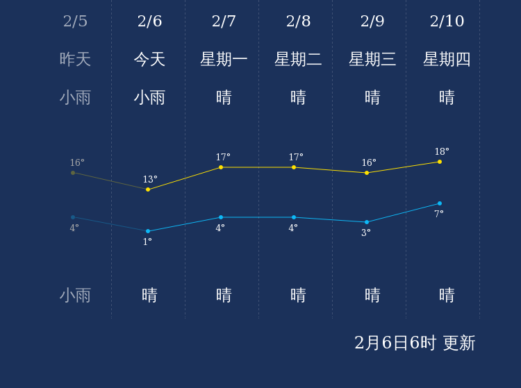 中国天气网讯 今天是2月6日星期日,一起来看天气。