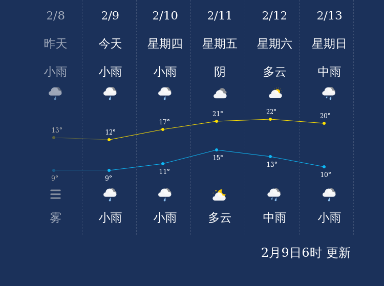 中国天气网讯 今天是2月9日星期三,一起来看天气。