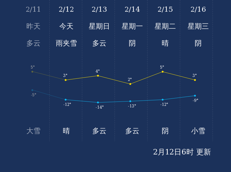 中国天气网讯 今天是2月12日星期六,一起来看天气。