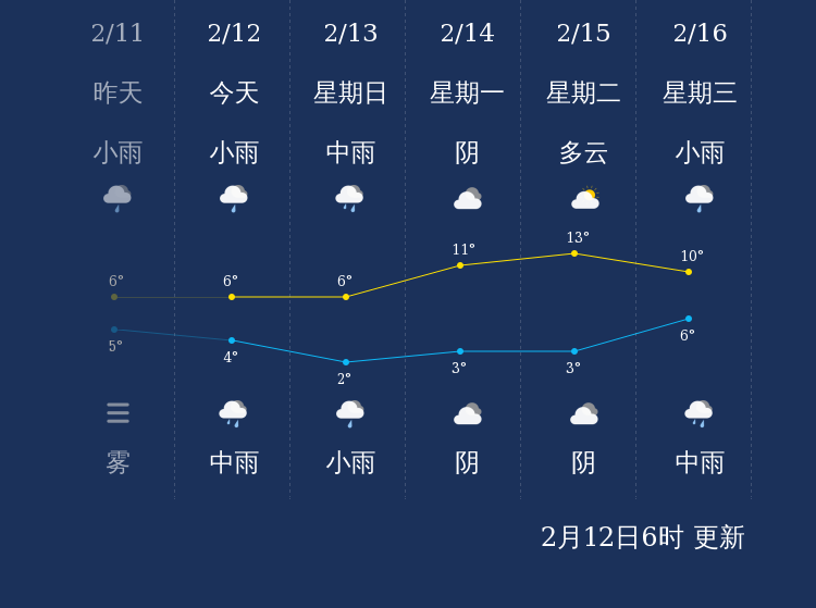 中国天气网讯 今天是2月12日星期六,一起来看天气。