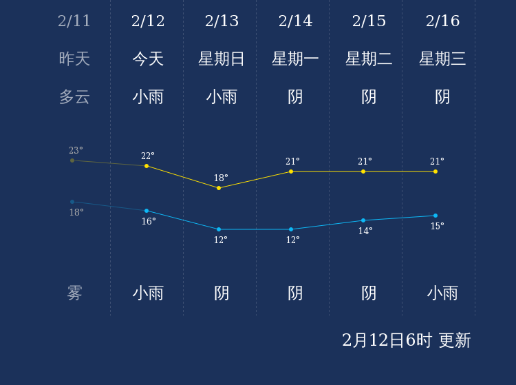 中国天气网讯 今天是2月12日星期六,一起来看天气。