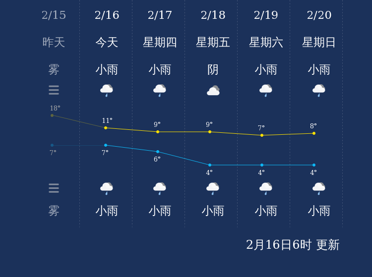 中国天气网讯 今天是2月16日星期三,一起来看天气。