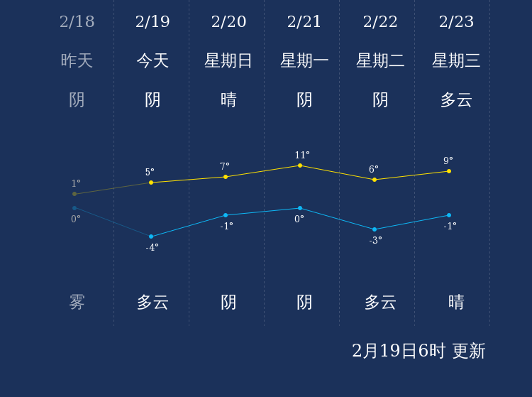 中国天气网讯 今天是2月19日星期六,一起来看天气。