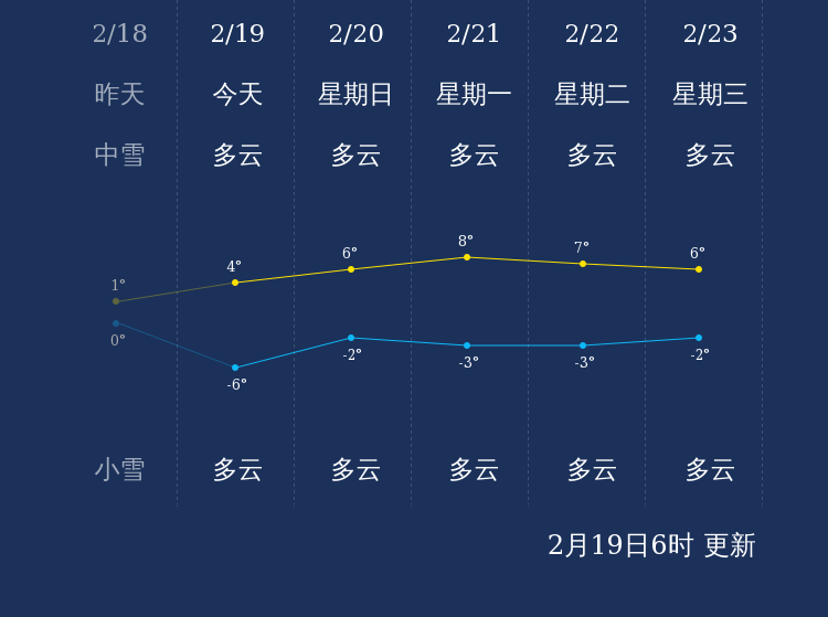 中国天气网讯 今天是2月19日星期六,一起来看天气。