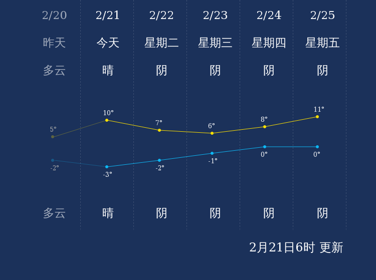 中国天气网讯 今天是2月21日星期一,一起来看天气。