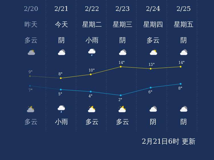 中国天气网讯 今天是2月21日星期一,一起来看天气。