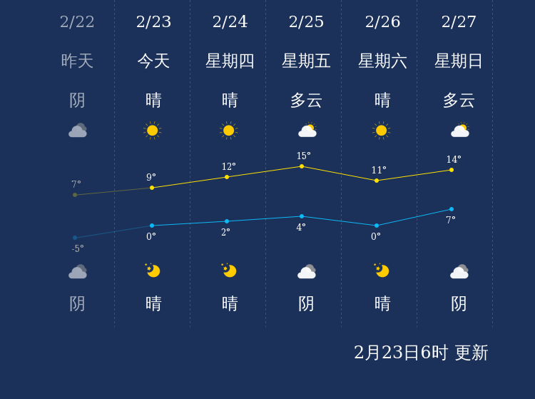 中国天气网讯 今天是2月23日星期三,一起来看天气。