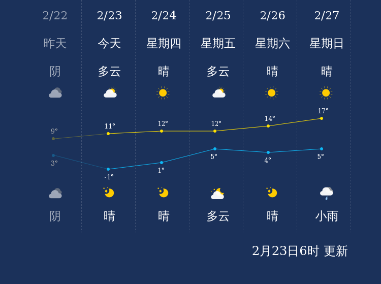 中国天气网讯 今天是2月23日星期三,一起来看天气。