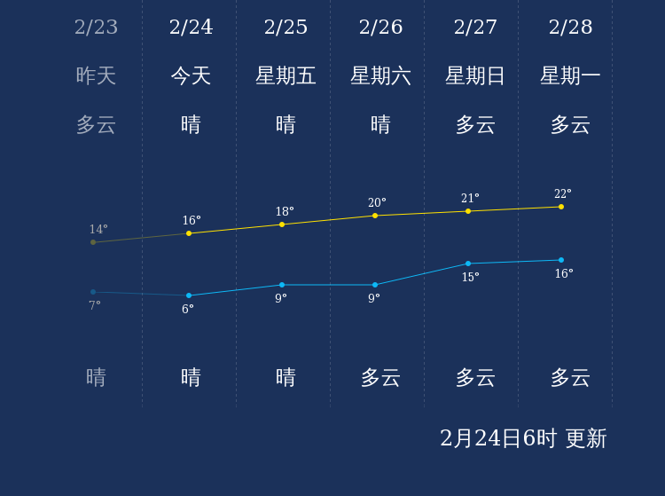中国天气网讯 今天是2月24日星期四,一起来看天气。