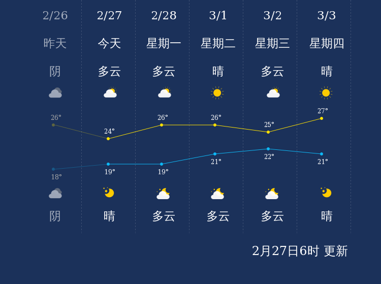 中国天气网讯 今天是2月27日星期日,一起来看天气。
