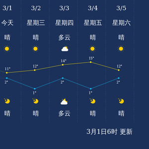 中国天气网讯 今天是3月1日星期二,一起来看天气。