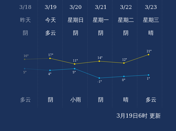 中国天气网讯 今天是3月19日星期六,一起来看天气。