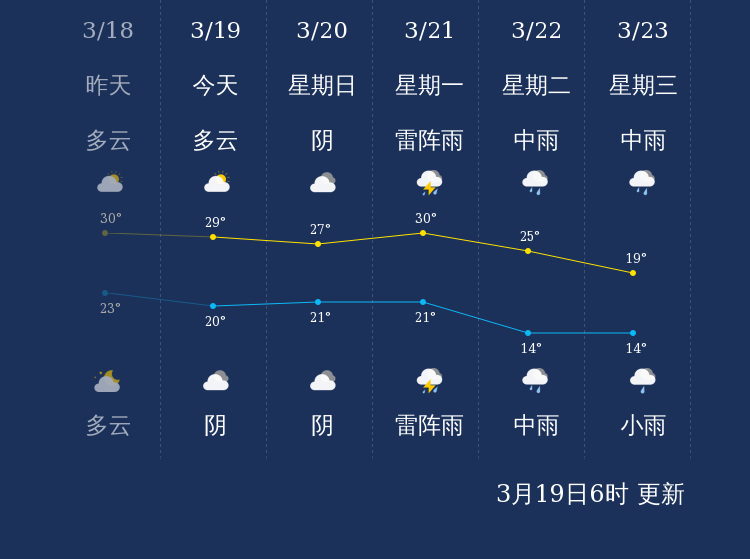 中国天气网讯 今天是3月19日星期六,一起来看天气。