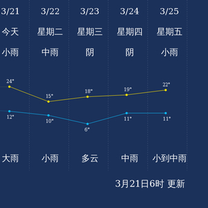 中国天气网讯 今天是3月21日星期一,一起来看天气。