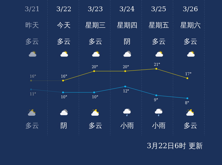 中国天气网讯 今天是3月22日星期二,一起来看天气。