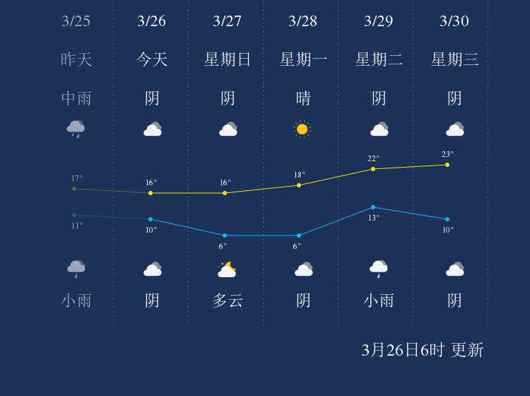中国天气网讯 今天是3月26日星期六,一起来看天气。