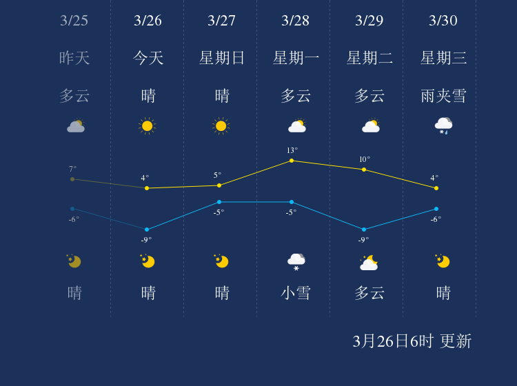 中国天气网讯 今天是3月26日星期六,一起来看天气。