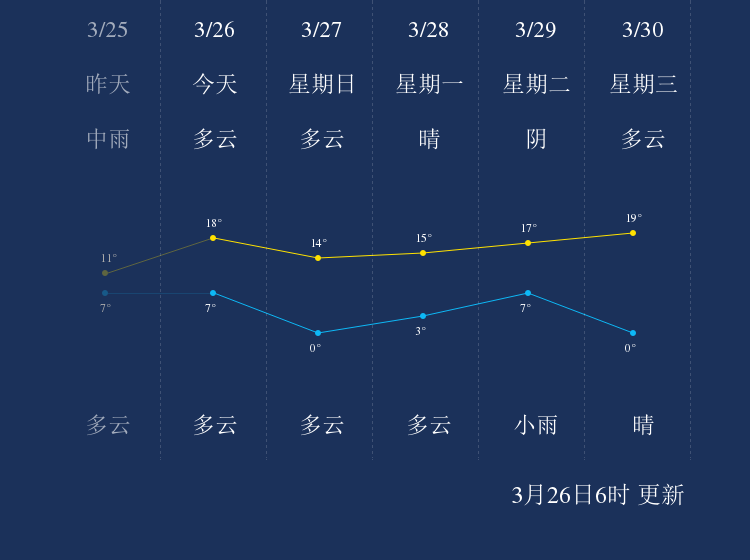 中国天气网讯 今天是3月26日星期六,一起来看天气。