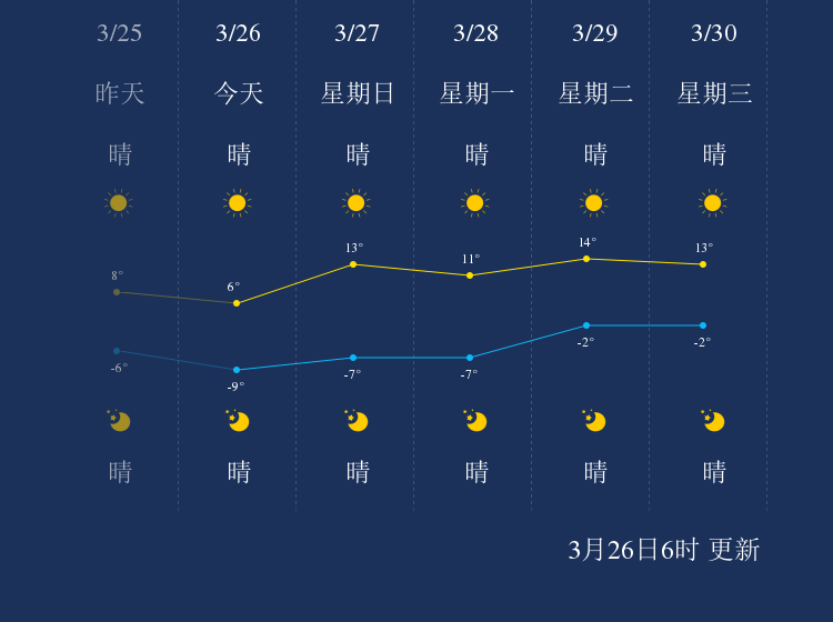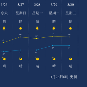 中国天气网讯 今天是3月26日星期六,一起来看天气。