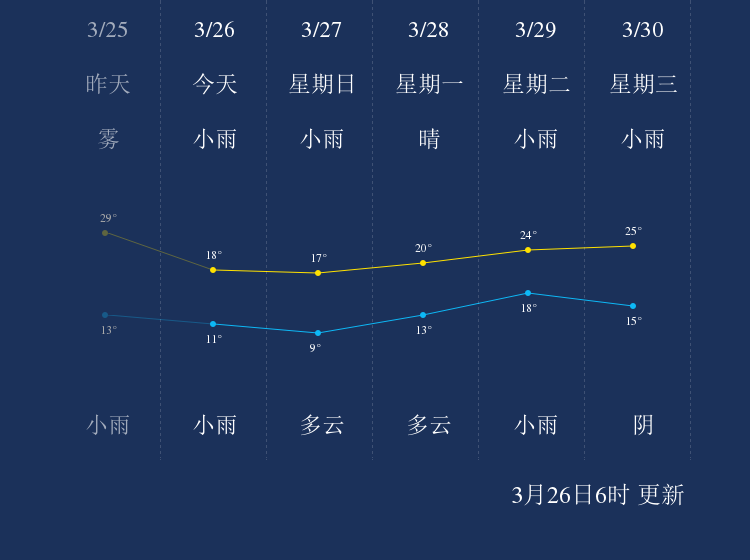 中国天气网讯 今天是3月26日星期六,一起来看天气。