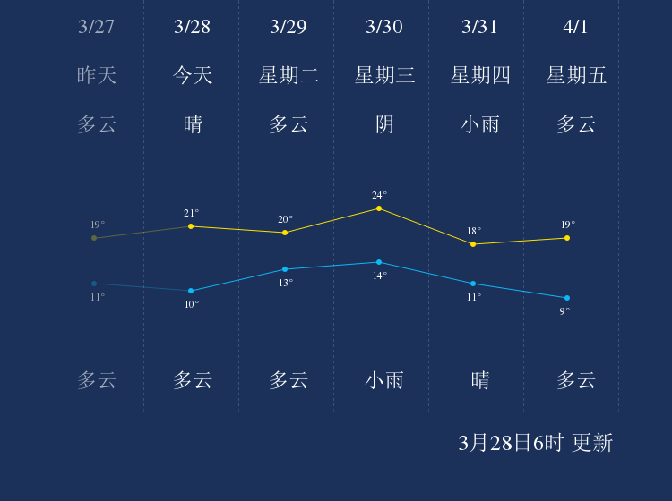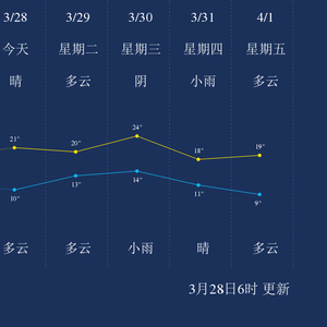 中国天气网讯 今天是3月28日星期一,一起来看天气。