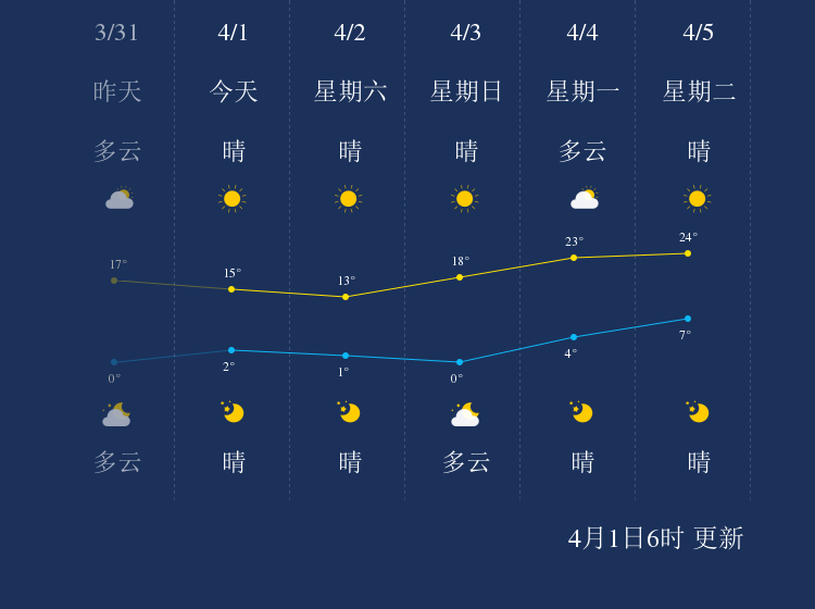 中国天气网讯 今天是4月1日星期五,一起来看天气。