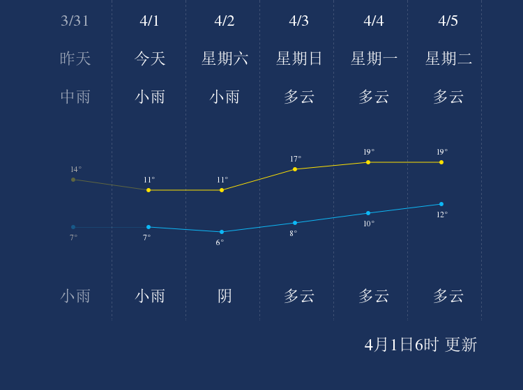中国天气网讯 今天是4月1日星期五,一起来看天气。