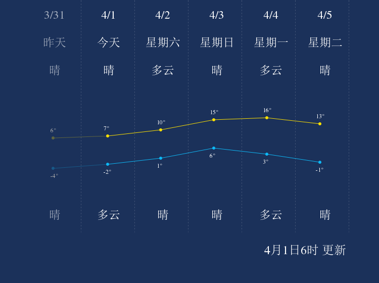 中国天气网讯 今天是4月1日星期五,一起来看天气。